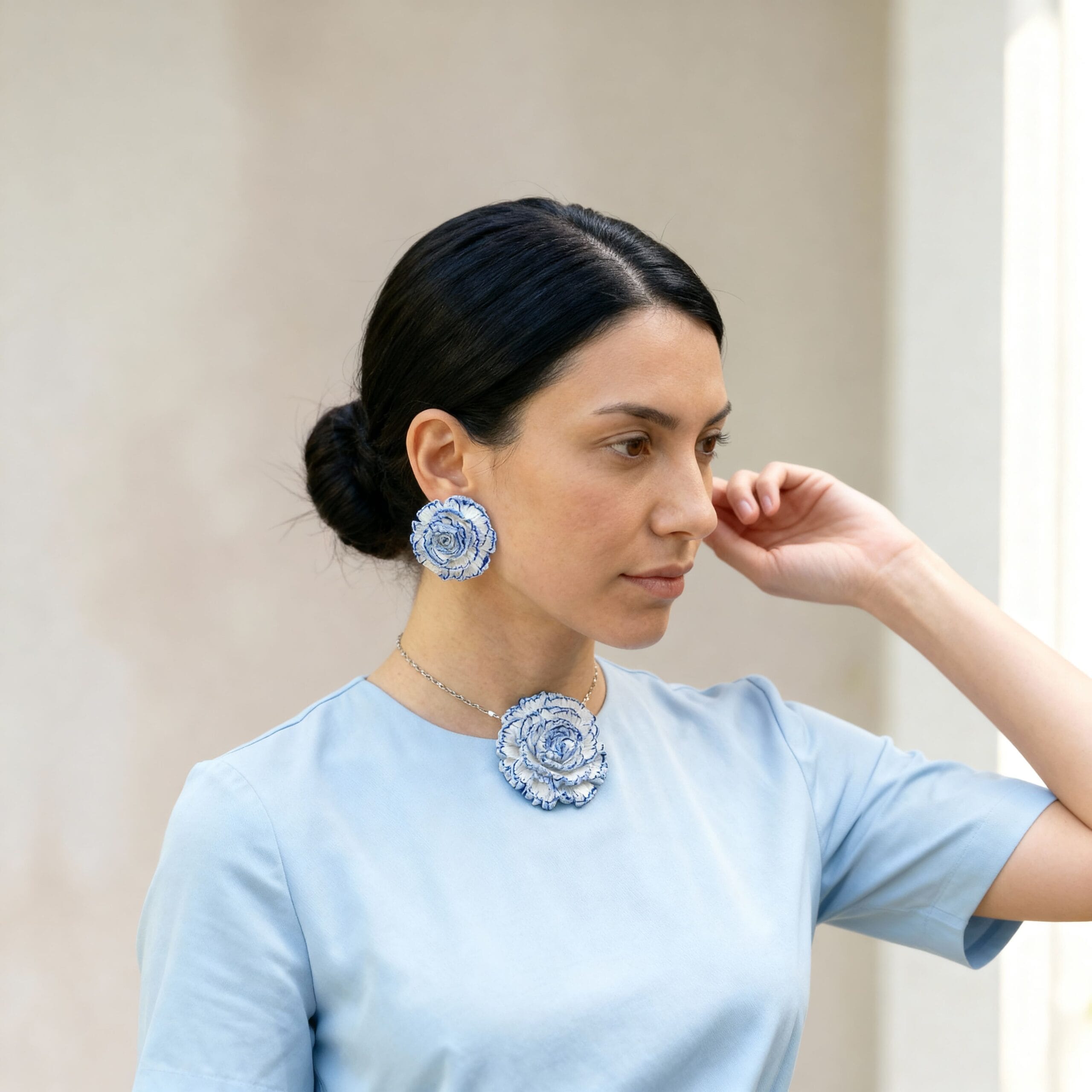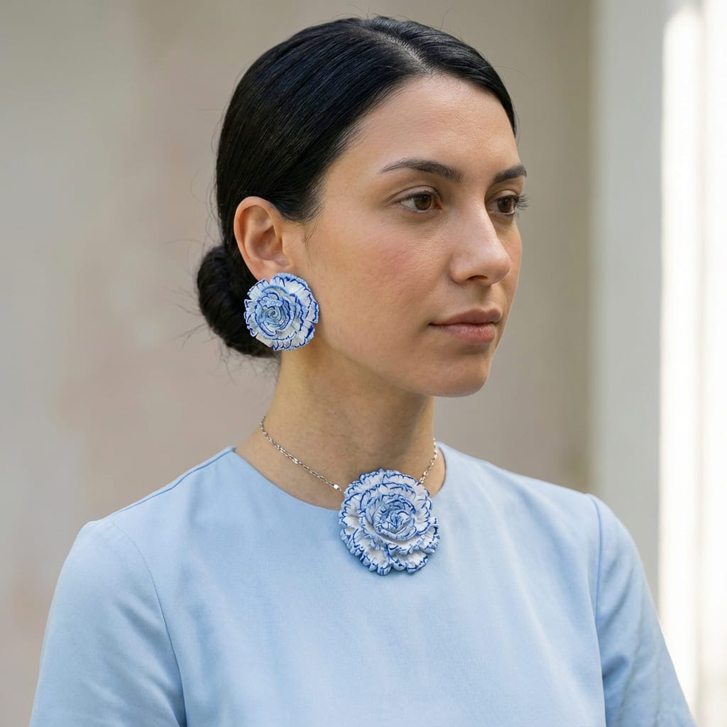 Diseño favorecedor: los tonos azul y blanco iluminan el rostro y combinan con looks de invitada, flamenca o estilismos más minimal.