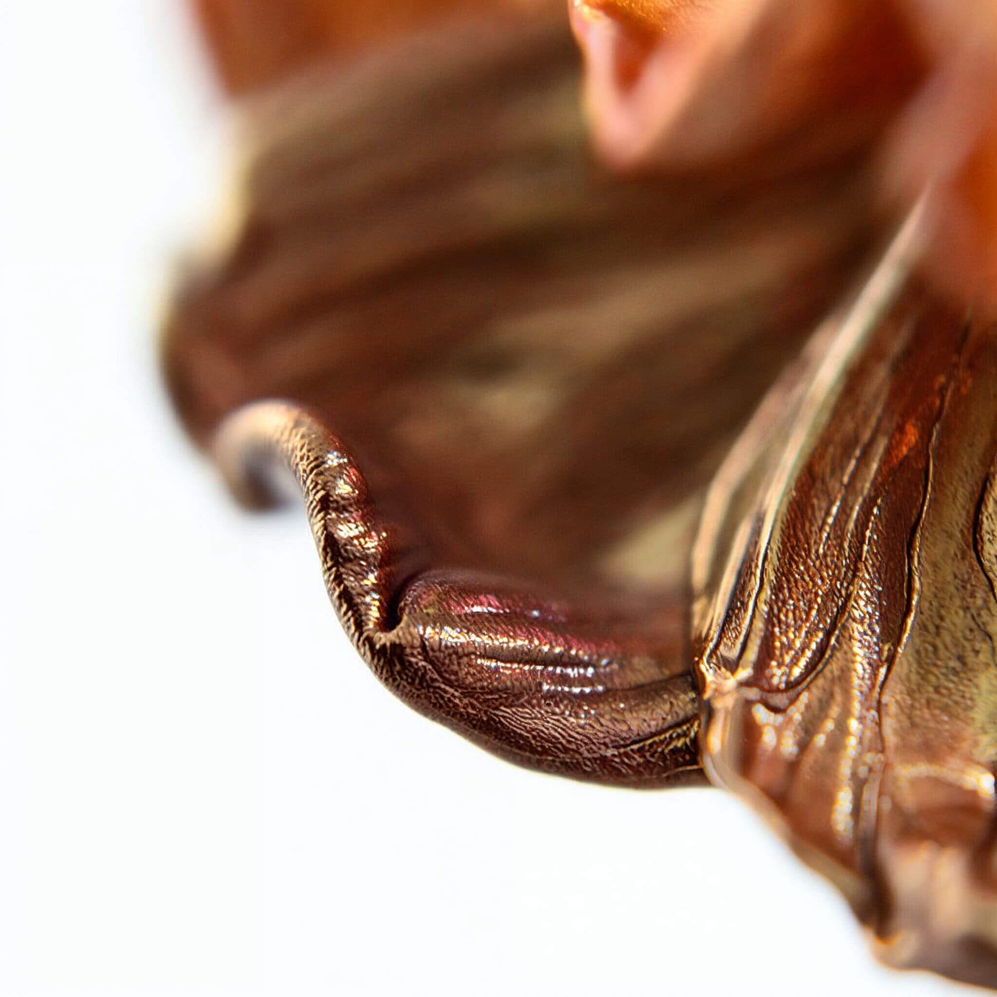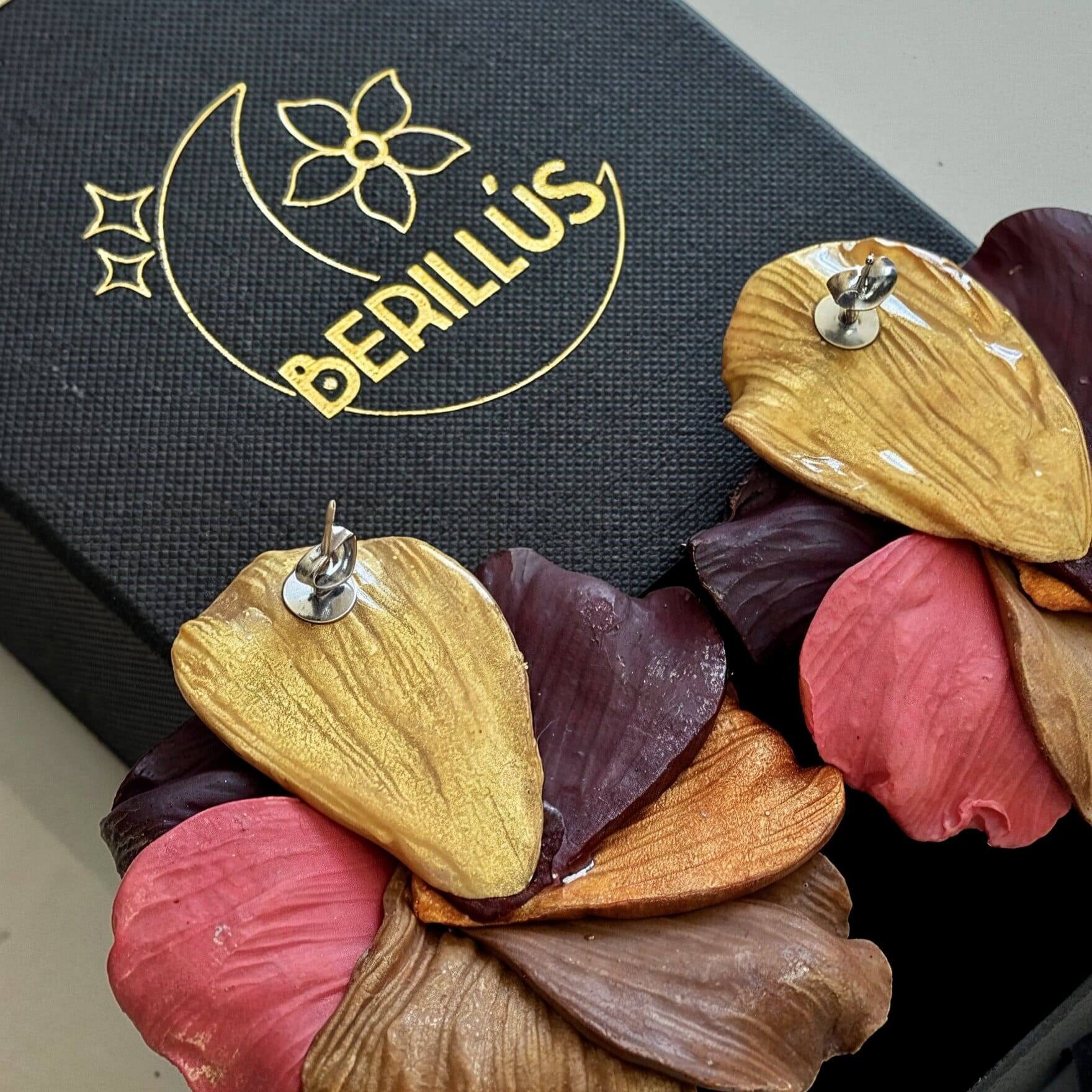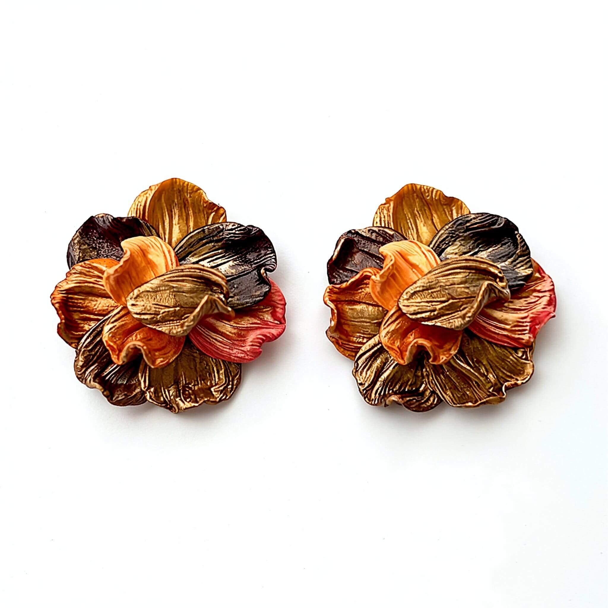 Dalia es una flor esculpida pétalo a pétalo en una paleta elegante —oro viejo, ámbar miel, cacao suave y un toque rosé— pensada para looks de boda y cenas de gala.