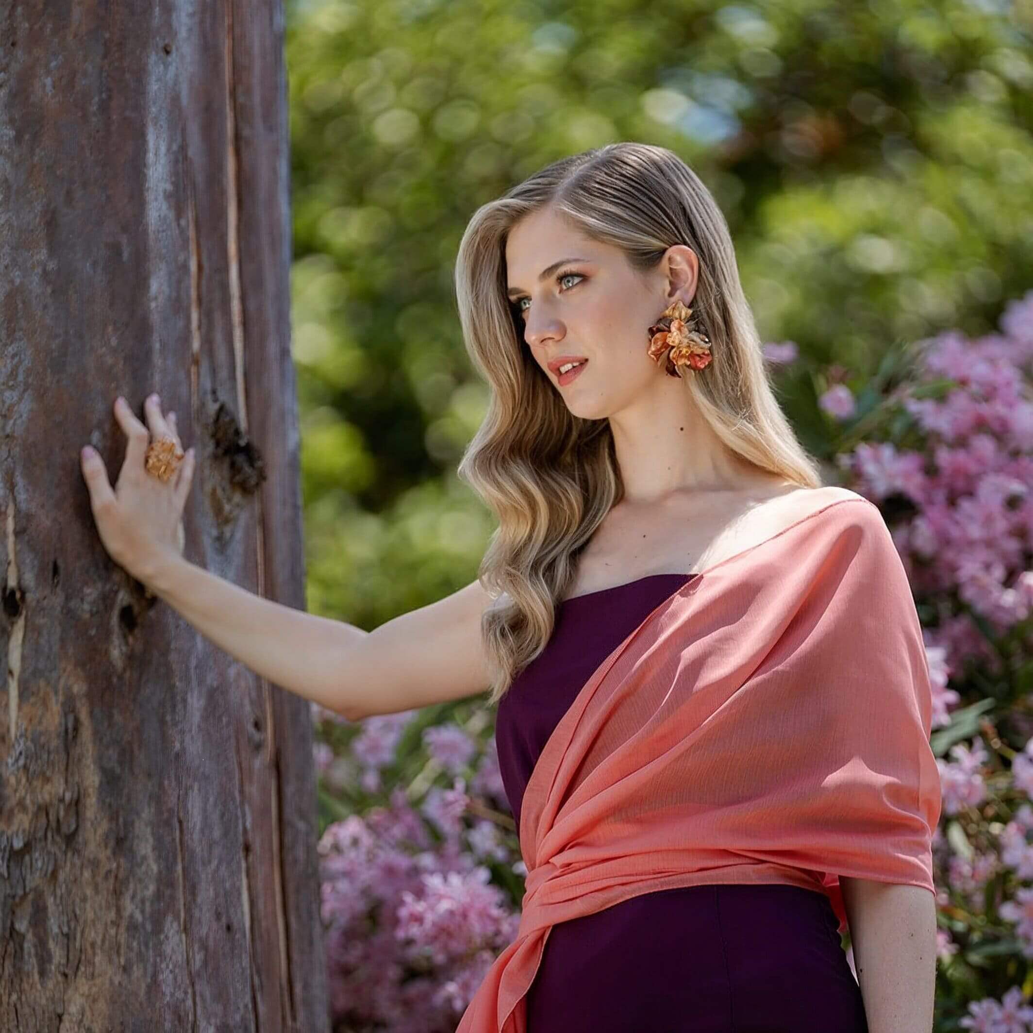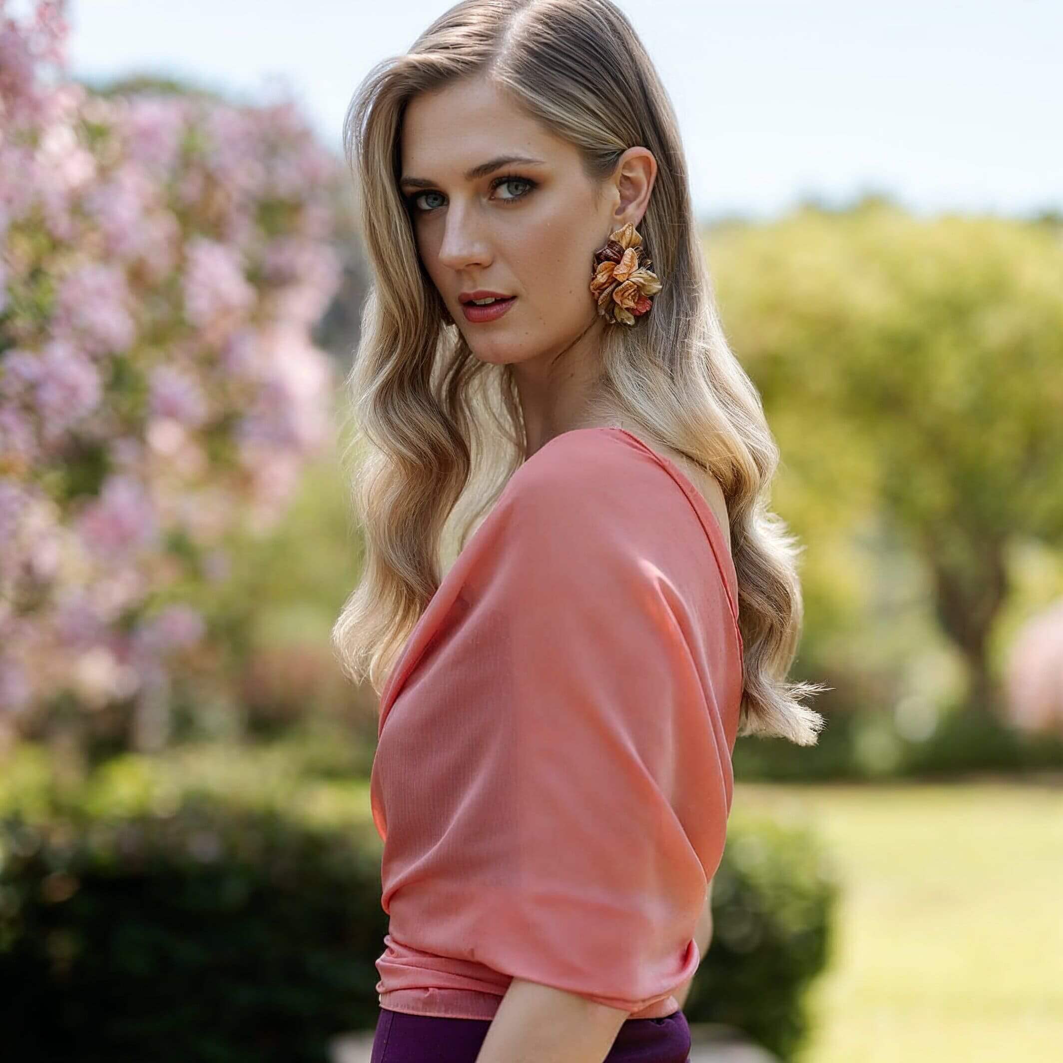 Con un modelado artesanal que crea profundidad y movimiento, Dalia ilumina el rostro con una combinación cromática cálida y refinada. Su volumen controlado estiliza y aporta carácter sin recargar, funcionando igual de bien con vestidos minimalistas que con siluetas clásicas.