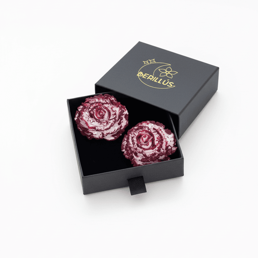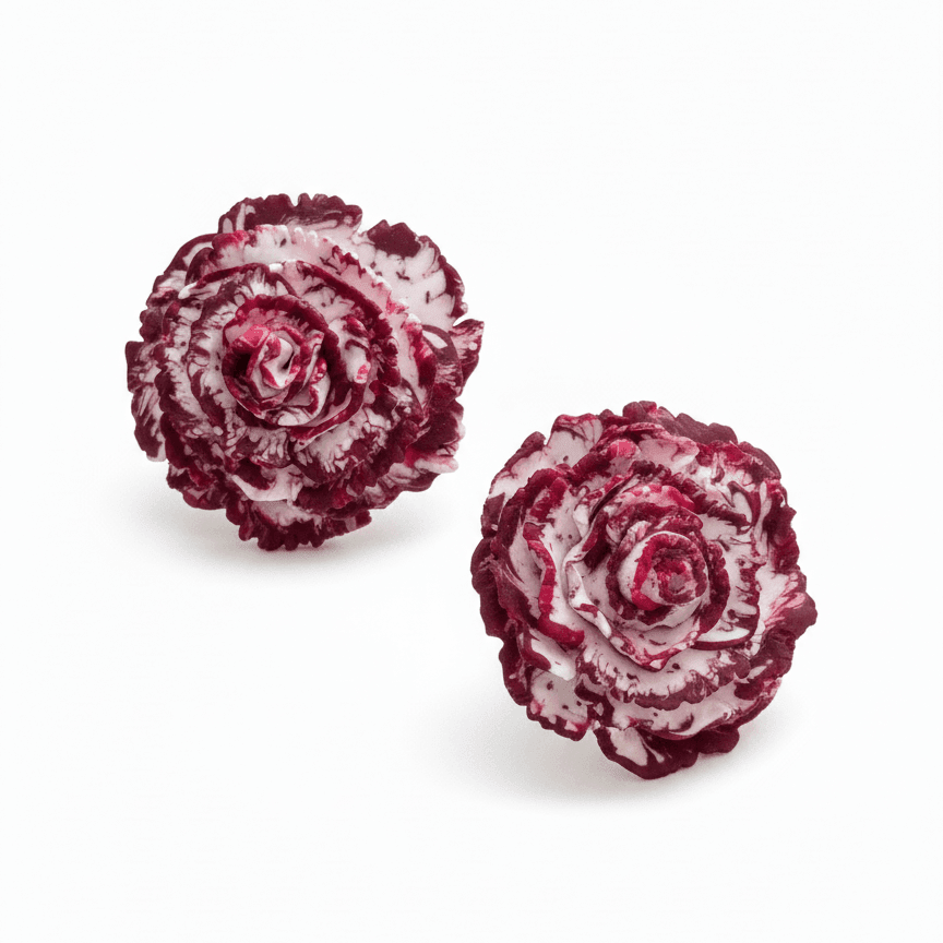 Nuestros pendientes Clavel Blanco están cuidadosamente moldeados a mano para capturar la belleza vibrante del clavel andaluz, con un juego de tonos burdeos.