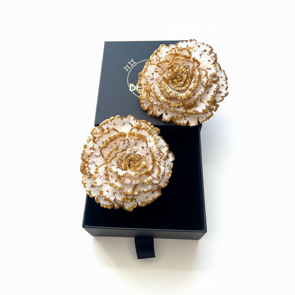 Filo dorado artesanal: cada pétalo está perfilado a mano, creando un acabado brillante, delicado y muy especial.