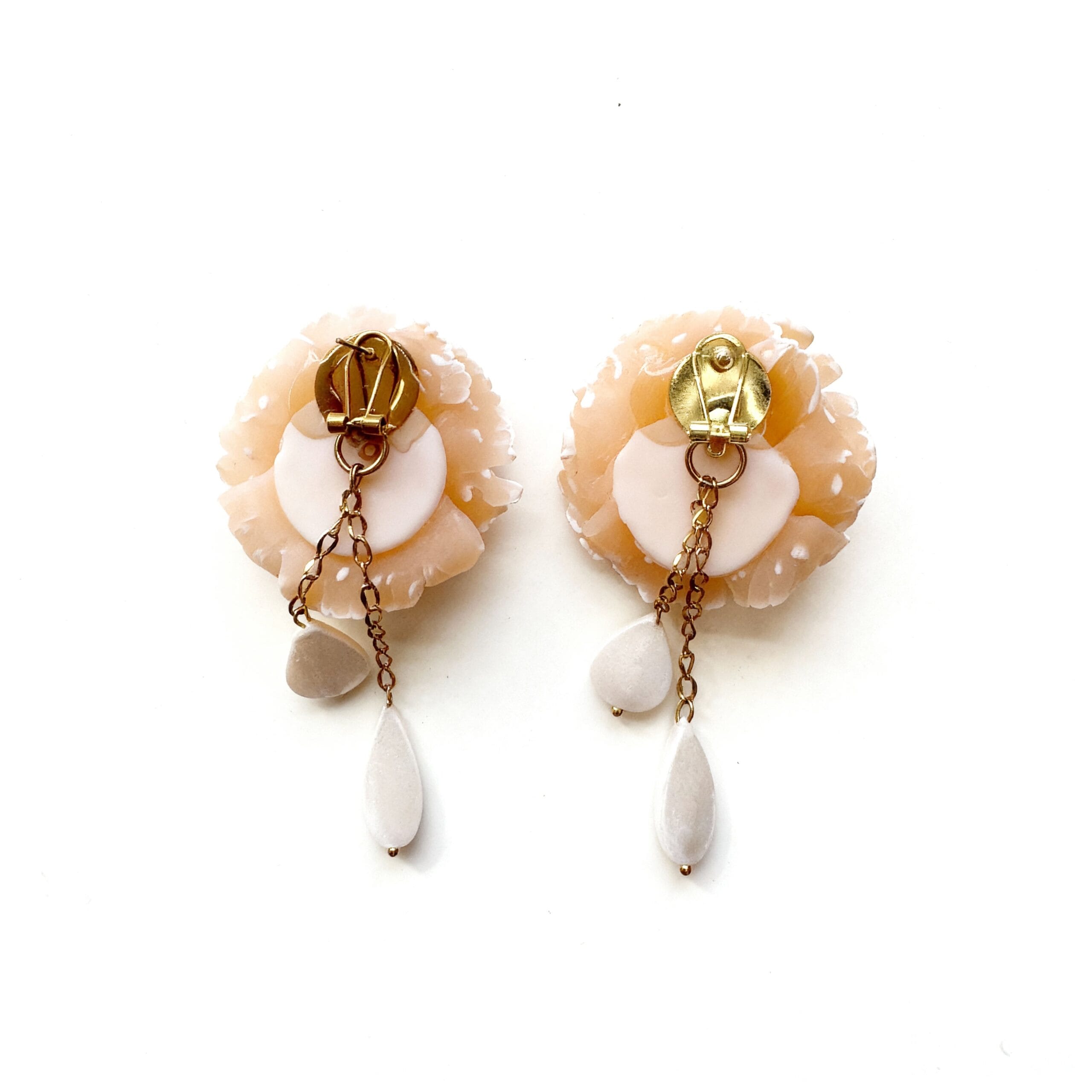 Diseño delicado: un clavel beige suave con toques blancos que favorece y aporta luz al rostro.