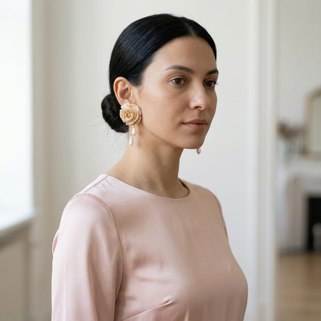 Acabado artesanal: cada pétalo y cada perla se modela a mano, creando una pieza única.