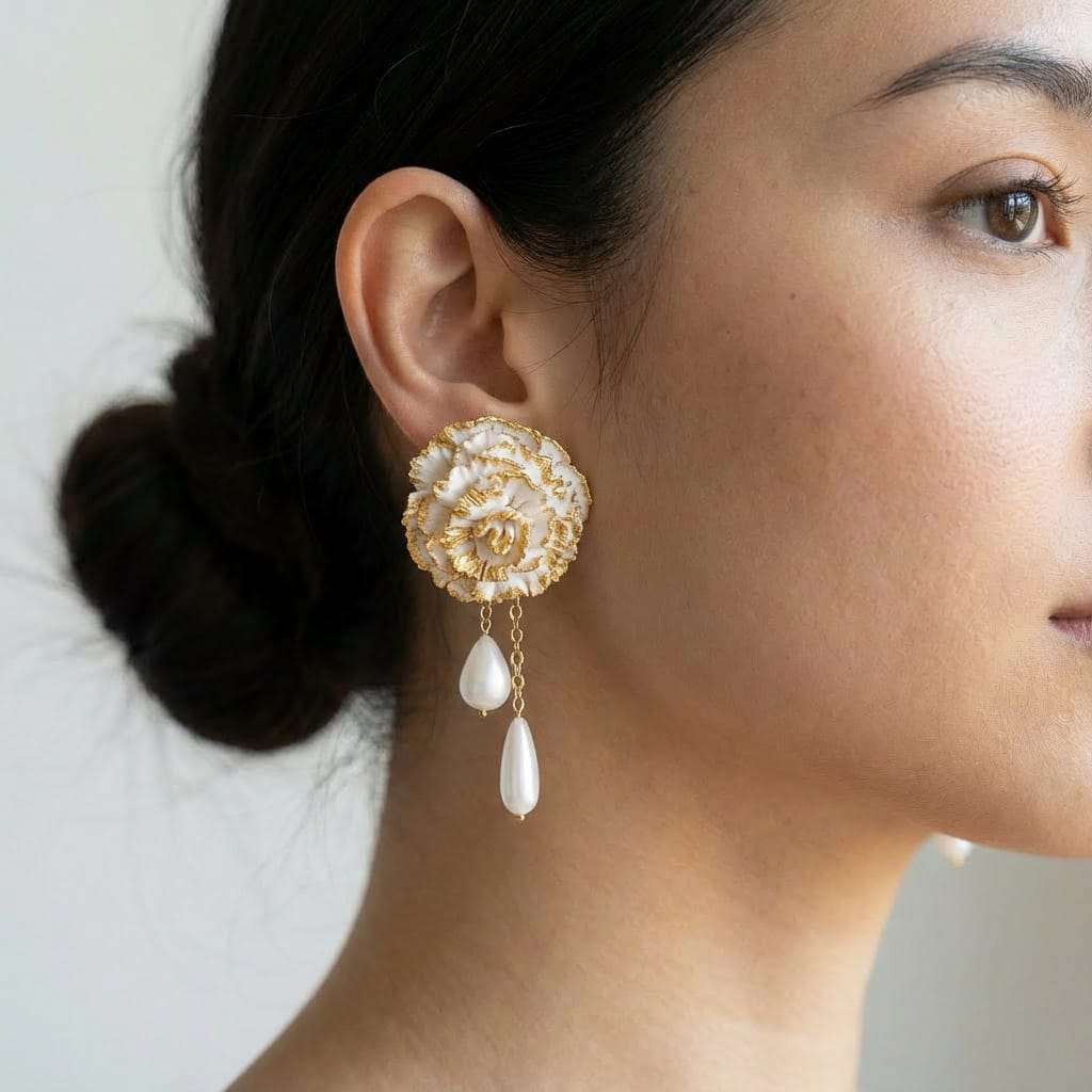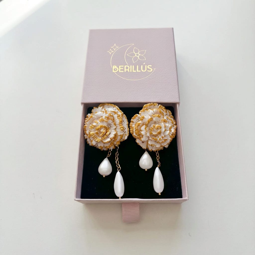 Acabado blanco + dorado: pétalos perfilados a mano con filo dorado para un efecto luminoso y elegante.