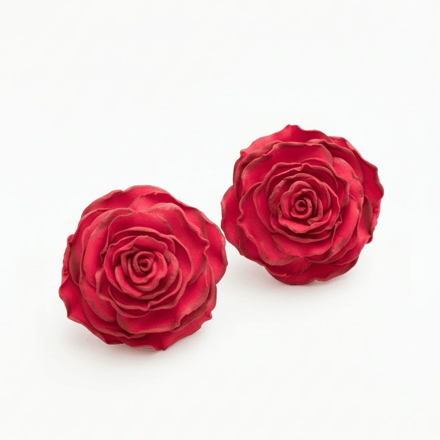 Los pendientes Rosa Carmesí capturan la intensidad del rojo profundo con la suavidad de una rosa abierta en plenitud. Modelados a mano pétalo a pétalo, son una oda a la elegancia clásica con un giro actual y rotundo.